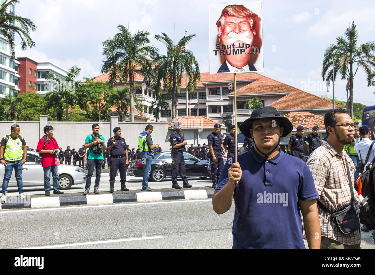 Kuala Lumpur Malaysia 15th Dec 2017 Malaysian Muslim Are Carrying Picket Signs To Protest Against The United States Hundreds Of People Gathered Outside The Us Embassy At Kuala Lumpur To Protest Against